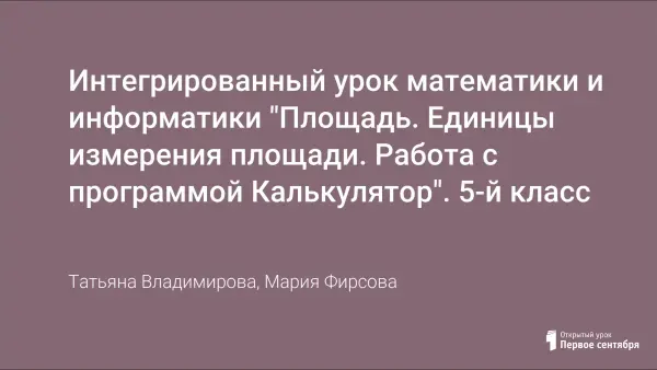 Интегрированный урок математики и информатики "Площадь. Единицы измерения площади. Работа с программой Калькулятор". 5-й класс
