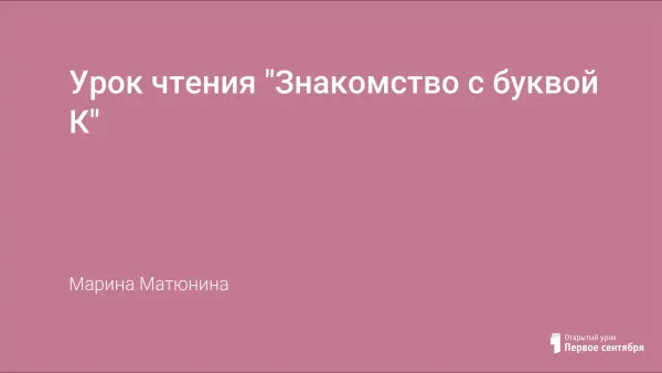 На уроке учащиеся знакомятся с буквой "К". Презентация используется с целью наглядно демонстрировать материал и как интерактивное средство, для доступности и привлекательности учебного процесса.