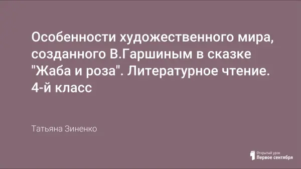 На уроке дети знакомятся со сказкой Гаршина, развивают умения и навыки работы с художественным текстом, с литературоведческими понятиями.