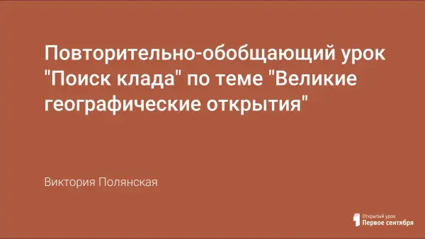 Урок "Поиск клада" по теме «Великие географические открытия» с применением игровых технологий. Тип урока – повторительно-обобщающий. С целью закрепить конкретное представление об эпохе Великих географических открытий; систематизировать и обобщить знания учащихся по этой теме.