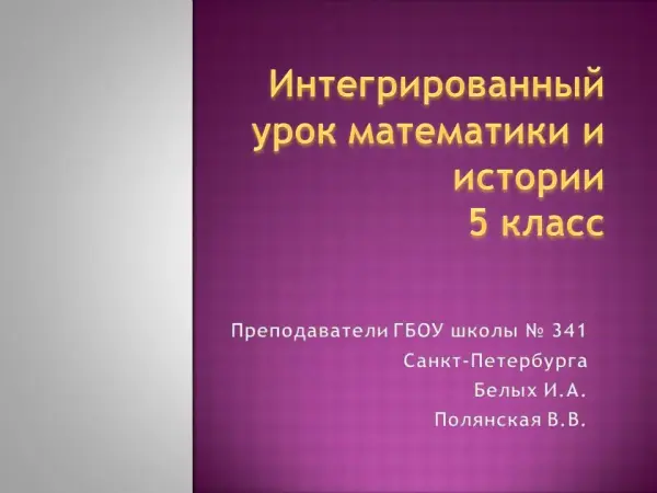 Интегрированный урок математики и истории обобщает знания по темам «Наука и образование в Древней Греции» и «Арифметические действия с десятичными дробями». Урок развивает логическое мышление и творческий подходк решению задач, познавательный интерес к предметам, стремление к самообразованию и самосовершенствованию. Обращается внимание учащихся на жизнь Пифагора – яркий пример служения не только науке, но и заботы о нравственном здоровье общества.