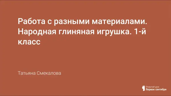 Занятие знакомит детей с глиняной игрушкой как одним из видов народного творчества. Рассчитано на учащихся 1-го класса. Проводится в форме путешествия по стране глиняных игрушек.