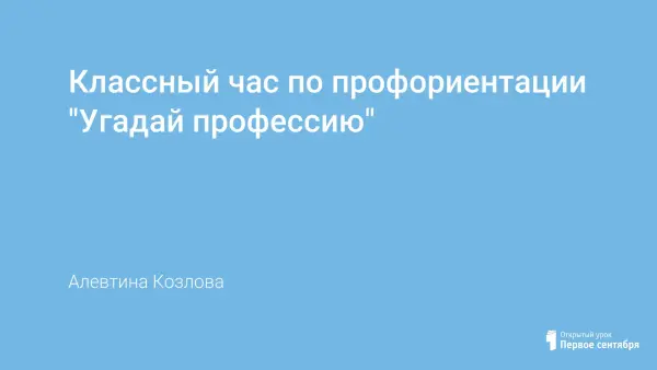 Цель классного часа: личностное самосовершенствование учащихся в профориентационной работе, познакомить учащихся с классификацией профессии по предметам труда в игровой форме, привить интерес к различным видам деятельности, задуматься о профессиональном будущем.
