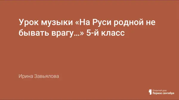 Урок воспитания патриотизма, любви к родине – погружение в историю через искусство. Старинная солдатская песня, повторение патриотической музыки в творчестве русских композиторов дает настрой всему уроку. Учащиеся знакомятся с творчеством Сергея Прокофьева, слушают кантату «Александр Невский» – часть «Ледовое побоище». Красной нитью проходит вопрос: должны ли люди знать историю, свои корни, род, чтить и помнить тех, кто сражался за родину?