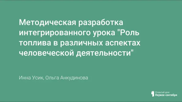 Методическая разработка интегрированного урока "Роль топлива в различных аспектах человеческой деятельности"