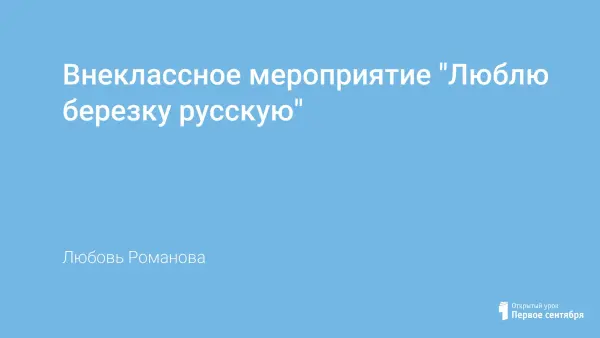 Внеклассное мероприятие направлено на воспитание патриотизма, чувства любви к своей Родине, знакомит с одним из символов нашей Родины – русской березой. Позволяет формировать личность, испытывающую патриотические чувства, преданность и любовь к своему Отечеству, гордость за его прошлое и настоящее, готовность к его защите. Проведено в нетрадиционной форме метода-проекта в виде праздника. Использована групповая и индивидуальная работа.