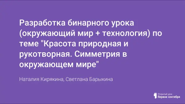 Разработка бинарного урока (окружающий мир + технология) по теме "Красота природная и рукотворная. Симметрия в окружающем мире"