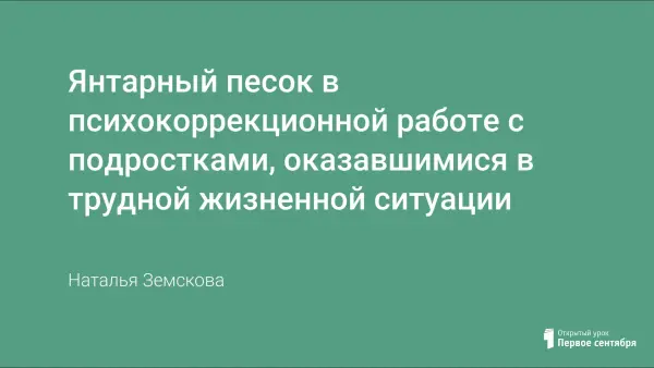 Описана песочная арт-терапия как метод невербальной психокоррекции. Занятия с подростками гармонизируют эмоциональное состояние как потенциал для преодоления деструктивных изменений личности и личностного роста; предотвращает негативные эмоциональные переживания и их проявления.