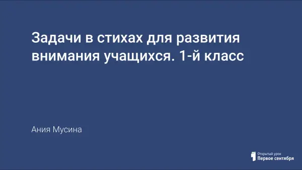 На уроке целесообразно использовать занимательный материал, в частности задания в стихах, для развития логического мышления, поддержания интереса к учебному процессу, создания благоприятной обстановки на уроке. У детей возникает непроизвольное внимание. В дальнейшем лишь при упоминании о том, что сейчас будем решать задачу в стихах, учащиеся, заинтересовавшись, уже сами стараются сосредоточиться. И непроизвольное внимание становится произвольным.