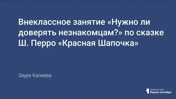 Внеклассное занятие «Нужно ли доверять незнакомцам?» по сказке Ш. Перро «Красная Шапочка»