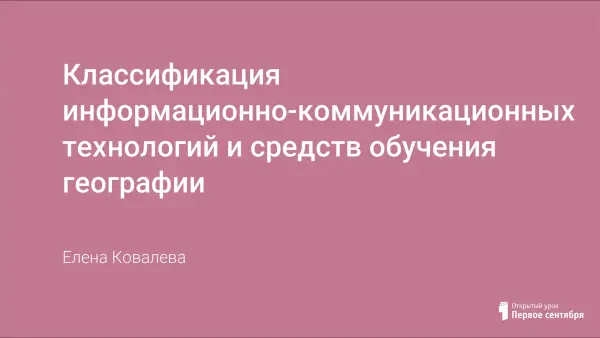 В статье приводится классификация средств обучения географии на основе анализа методических материалов и книг нескольких авторов. Предложена классификация информационно-коммуникационных технологий и средств обучения географии не на основе внутренних и внешних признаков, а по наличию в них обучающих и воспитывающих свойств. Подобная классификация позволяет отбирать и использовать электронные издания в соответствии с дидактической целью урока, что в свою очередь повышает его эффективность.