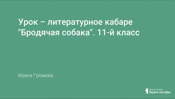 Серебряным веком принято называть период на рубеже XIX–XX веков, отличительными чертами которого стали взлёт русской культуры, появление «поэтического и художественного ренессанса». Представленный урок поможет окунуться в увлекательную атмосферу «поэтического ренессанса», прикоснуться к миру ярких талантов и творческих индивидуальностей, побывать в одном из самых известных литературно-артистических кабаре г. Петербурга «Бродячая собака».