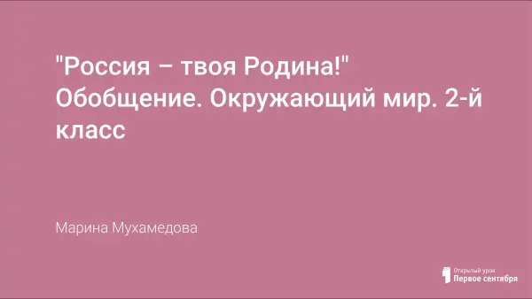 Урок носит обобщающий характер. Он направлен на то, чтобы учащиеся осознали понятие "Родина"; могли использовать полученные знания для поиска дополнительной информации об историческом прошлом страны, своего города, села.