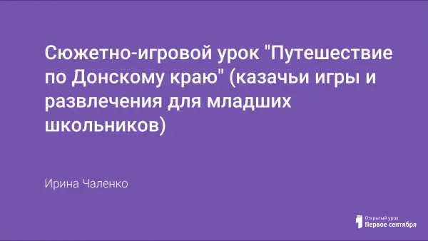 Сюжетно-игровой урок c использованием казачьих игр и развлечений для младших школьников.