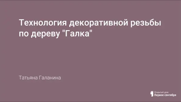 Работа содержит разъяснения технологических особенностей резьбы по дереву "Галка", рисунки-чертежи, которые помогут подготовить выбранный сюжет для резьбы в технике "Галка", и изображения работ, выполненных по этим рисункам.