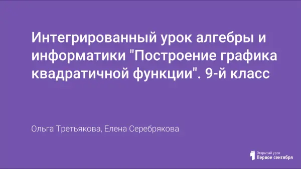 Интегрированный урок алгебры и информатики "Построение графика квадратичной функции". 9-й класс