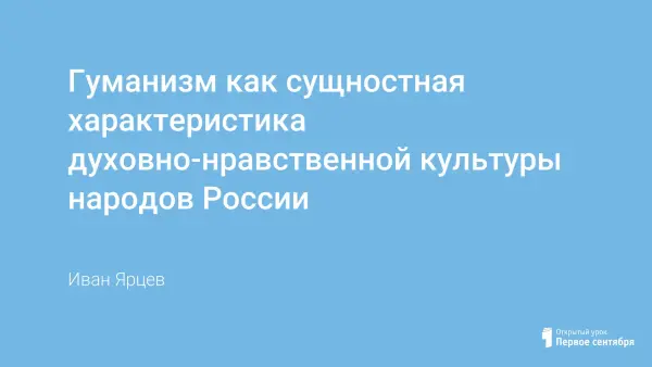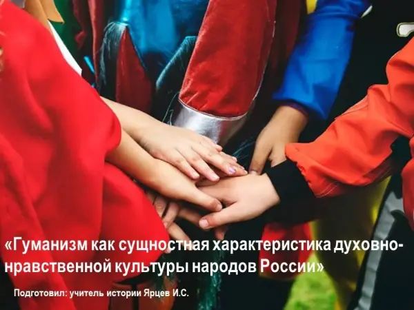 Россия – многонациональная многоконфессиональная страна и рассматривать все религиозные направления в рамках одного урока невозможно. Гуманизм свойственен культуре народов России, как имеющий религиозную, нравственную, исторически сложившуюся и правовую подосновы. На территории Российской Федерации действует законодательство, целью которого является в том числе и обеспечение гуманистических принципов на территории Российской Федерации.
