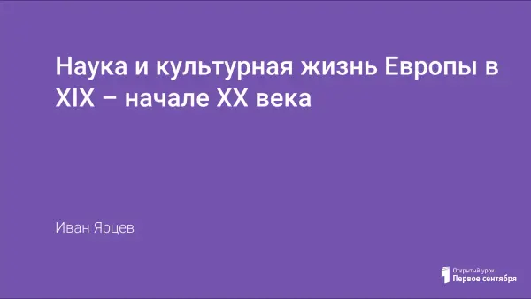 Представлен видеоролик по теме «Наука и культурная жизнь Европы в XIX – начале ХХ века».