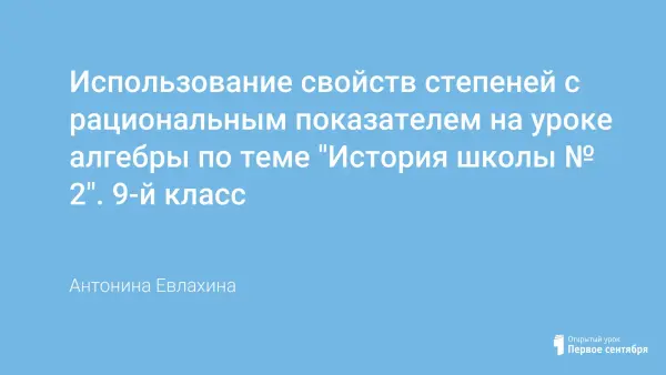 Урок закрепления и подготовки к контрольной работе. Цели урока: закрепить свойства степени с рациональным показателем в ходе выполнения упражнений; научить выполнять простейшие преобразования выражений, содержащие степени с дробным показателем; прививать познавательный интерес к истории родной школы.