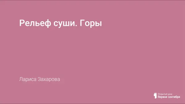 Цель урока: формирование знаний о рельефе суши на примере крупных гор, форм рельефа своей местности.