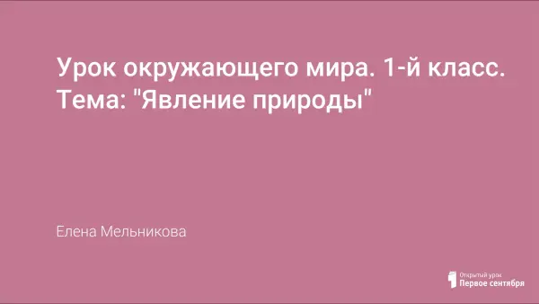 Урок окружающего мира проводится с использованием ИКТ, построен на основе деятельностного метода обучения. Задачи урока: дать представление о характерных признаках явлений природы в разные времена года, расширить знания детей об изменениях в неживой природе; развивать представления учащихся о многообразии явлений природы в разные времена года; способствовать развитию связной речи, оперативной памяти, произвольного внимания, логического мышления.