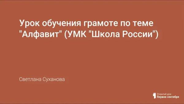 Данный урок – один из заключительных уроков обучения грамоте. Цель – познакомить детей с понятием и происхождением слова «алфавит» и «азбука». Урок построен с использованием деятельностного метода обучения и ИКТ.