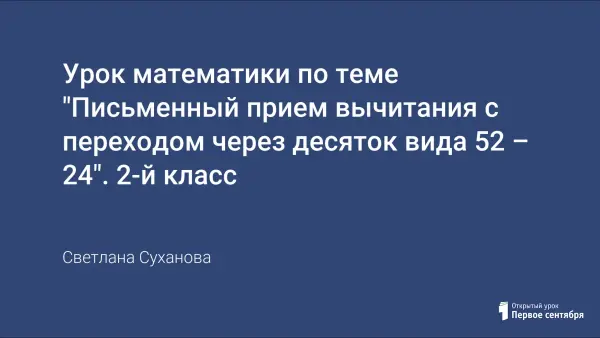 Урок постановки учебной задачи (типология уроков по развивающей системе системе Эльконина–Давыдова) является первым уроком по теме «Письменные приёмы вычитания с переходом через десяток». Данный урок разработан с учётом требований ФГОС. К разработке урока прилагается технологическая карта самоанализа.