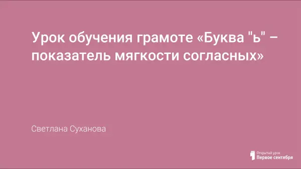 Урок обучения грамоте знакомит учащихся с буквой мягкий знак. Выполняя задания, первоклассники придут к выводу, что есть буква, которая, не обозначая звука, смягчает предшествующий согласный.