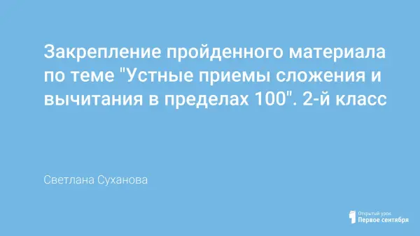 Данный урок рефлексии поможет закрепить ранее изученный материал по теме «Устные вычисления в пределах 100». На уроке учащиеся увидят собственные затруднения, будут учиться контролировать процесс и результаты своей деятельности, осуществлять коррекцию индивидуальных затруднений.