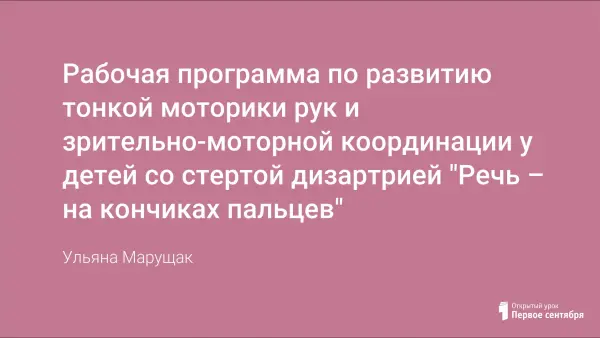 Один из показателей интеллектуальной готовности к школьному обучению - уровень развития мелкой моторики. Отклонения в речевом развитии имеют от 40 до 60 % детей. Среди наиболее распространенных нарушений - дизартрия. У детей со стертой дизартрией развитие зрительно-моторной координации и тонкой моторики рук не соответствует возрасту, есть патология, и такие дети нуждаются в особенно тщательной подготовке к обучению.