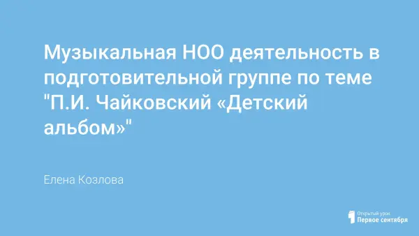 Цель занятия: познакомить детей старшего дошкольного возраста с пьесами из «Детского альбома» П.И. Чайковского.