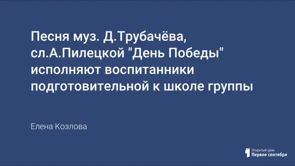 Воспитанники подготовительной к школе группы исполняют песню "День Победы" (муз. Д.Трубачёва, сл.А.Пилецкой).