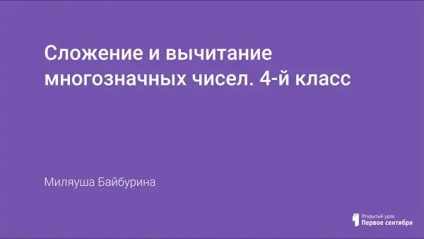 Урок повторения и закрепления материала направлен на отработку письменного сложения и вычитания многозначных чисел. Использованы приемы фронтальной, групповой и индивидуальной работы. Форма проведения урока – деловая игра.