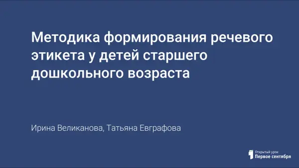 Методика формирования речевого этикета у детей старшего дошкольного возраста