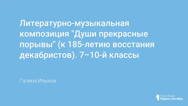 Мероприятие отражает подвиг декабристов в литературе, кино, живописи; связь декабристов с А.С. Пушкиным; тема декабристов в творчестве Н.А. Некрасова. Нравственное воспитание на примере лучших людей эпохи начала XIX века. Эстетическое воспитание.