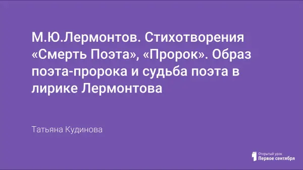 Урок продолжает знакомство учащихся с основными мотивами лирики Лермонтова. Образ поэта-пророка и его судьба прослеживаются на примере стихотворений «Смерть Поэта» и «Пророк». Стихотворение «Пророк» анализируется в сравнении со стихотворением Пушкина «Пророк». Осуществляется интеграция с уроком истории, что помогает учащимся лучше понять атмосферу того времени. На слайдах представлены портреты поэтов и исторических личностей, имена которых звучат на уроке.