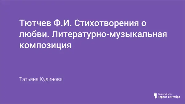 Музыкально-литературная композиция содержит рассказ об истории создания отдельных стихотворений Ф.И. Тютчева, которая относится к любовной лирике поэта и повествует об отдельных страницах жизни поэта. На уроке звучат стихи Тютчева и романсы на его стихотворения.