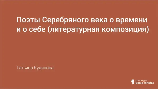 Литературная композиция подводит итог изучения творчества поэтов Серебряного века. Звучат основные принципы таких литературных течений модернизма, как символизм, акмеизм, футуризм и новокрестьянская поэзия. Учащиеся рассказывают стихотворения поэтов Серебряного века и комментируют их. Литературная композиция сопровождается показом слайдов, на которых представлены портреты поэтов Серебряного века. Звучат песни на стихи С.Есенина.