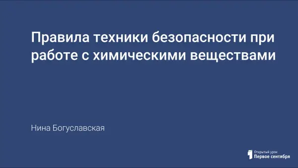 Урок проводится в форме игры, используется технология сотрудничества. Учащиеся повторяют основные правила техники безопасности при работе с химическими веществами, а также актуализируются ранее полученные знания по органической и неорганической химии.