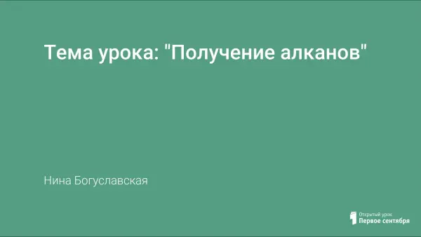Урок изучения нового материала, способов получения алканов. Кадры киноопытов, демонстрационный опыт электролиза раствора ацетата натрия, анимация химических реакций в презентации облегчают понимание учащимися сути представленных процессов, работа с интерактивной доской позволяет сразу же закрепить изученный материал.