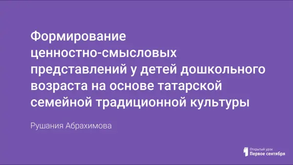 На занятии автор развивает духовно-нравственные качества личности ребенка на основе традиционной татарской культуры: воспитание уважения к родителям, старшим членам семьи, сестрам и братьям. Прививает культуру здорового образа жизни на основе обычаев и традиций. Формирует ценностно-смысловые представления о мире на родном татарском языке через пословицы, сказки, народную музыку, игры, праздники, танцы.