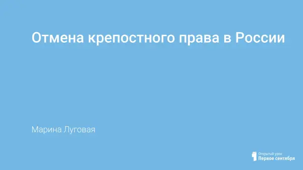 Цель урока: передать социально-экономическую атмосферу XIX века в годы правления Александра II 1855–1881 г; показать масштаб преобразований и отразить, какими способами власть пыталась модернизировать Россию. На уроке используется презентация. В виде анимационных схем рассматриваются основные причины, события и положения крестьянской реформы 1861 г. Основу урока составляет диалог учителя и учеников.
