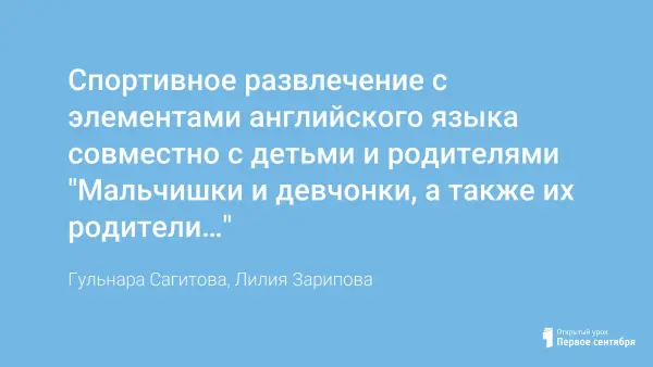 Спортивное развлечение с элементами английского языка развивает у учащихся положительные эмоции, чувства взаимопомощи, дисциплинированность и организованность. Способствует психологическому сближению детей и родителей. Тесное сотрудничество инструктора по физкультуре и учителя английского языка вызывает устойчивый интерес у детей к изучению иностранного языка.