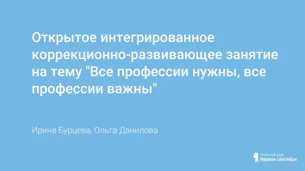 Организация необычных и интересных занятий из года в год осуществляется в рамках «Предметной недели», когда под общей тематикой специалисты и учителя готовят открытые занятия, выставки и представление для учащихся. В 2014–2015 учебном году предметная неделя была посвящена теме «В мире профессий». В данной статье представлен конспект открытого интегрированного коррекционно-развивающего занятия «Все профессии нужны, все профессии важны».