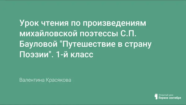 Урок построен в виде путешествия, во время которого дети знакомятся со всеми литературными жанрами михайловской поэтессы С.П. Бауловой, где главная идея – любовь к своему городу, родному краю, малой родине. Этот материал можно использовать не только на уроках литературного чтения, но и на внеклассных часах по тематике «Краеведение».