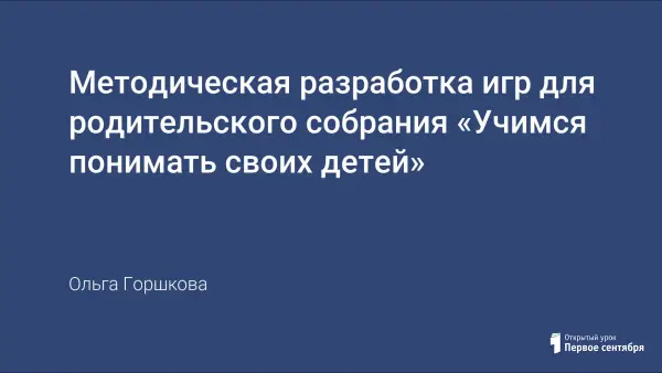 Методическая разработка игр для родительского собрания «Учимся понимать своих детей»