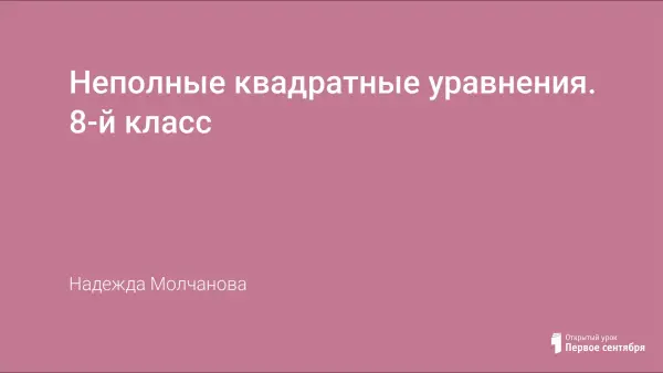 Разработка урока алгебры в 8-м классе, на котором необходимо сформировать понятие о квадратном уравнении, его коэффициентах а и b и свободном члене с. Познакомить учащихся с приведенным квадратным уравнением, изучить определение неполного квадратного уравнения, вырабатывать навыки решения неполных квадратных уравнений.