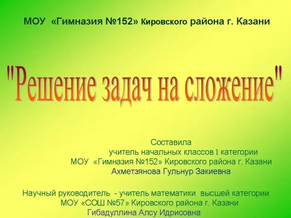 На уроке учащиеся изучают модели решения задач на сложение, формируют обобщенное представление о математических моделях – способах решения задач на сложение; получают представление о натуральных числах.