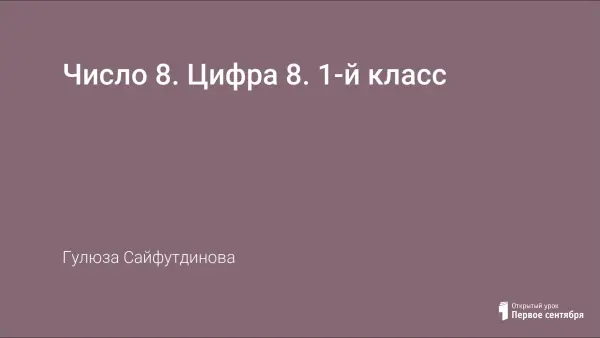 На занятии решается задача знакомства учащихся с числом 8, обучения писать цифру 8, изучение состава числа 8, закрепления навыков счета в пределах 10.