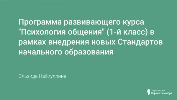 В статье отражено содержание основных тем курса, тематическое планирование, методическое обеспечение и логика учебного процесса в аспекте внедрения новых Стандартов начального образования. Групповые занятия по данной программе способствуют самопознанию и познанию других людей, повышению уверенности в себе, формированию навыков общения, что необходимо для полноценной школьной жизни и успешности ребенка в будущем.